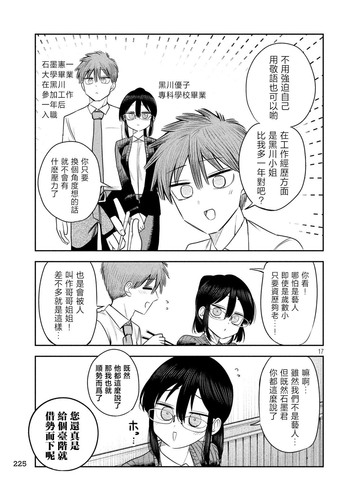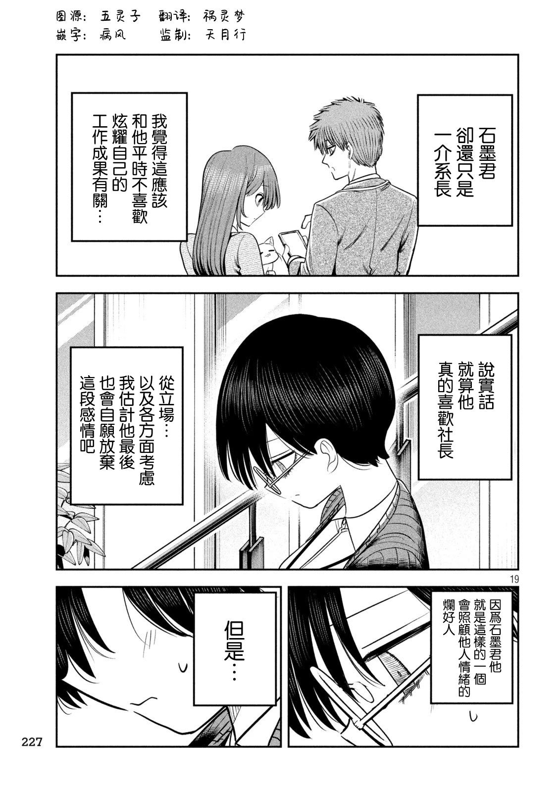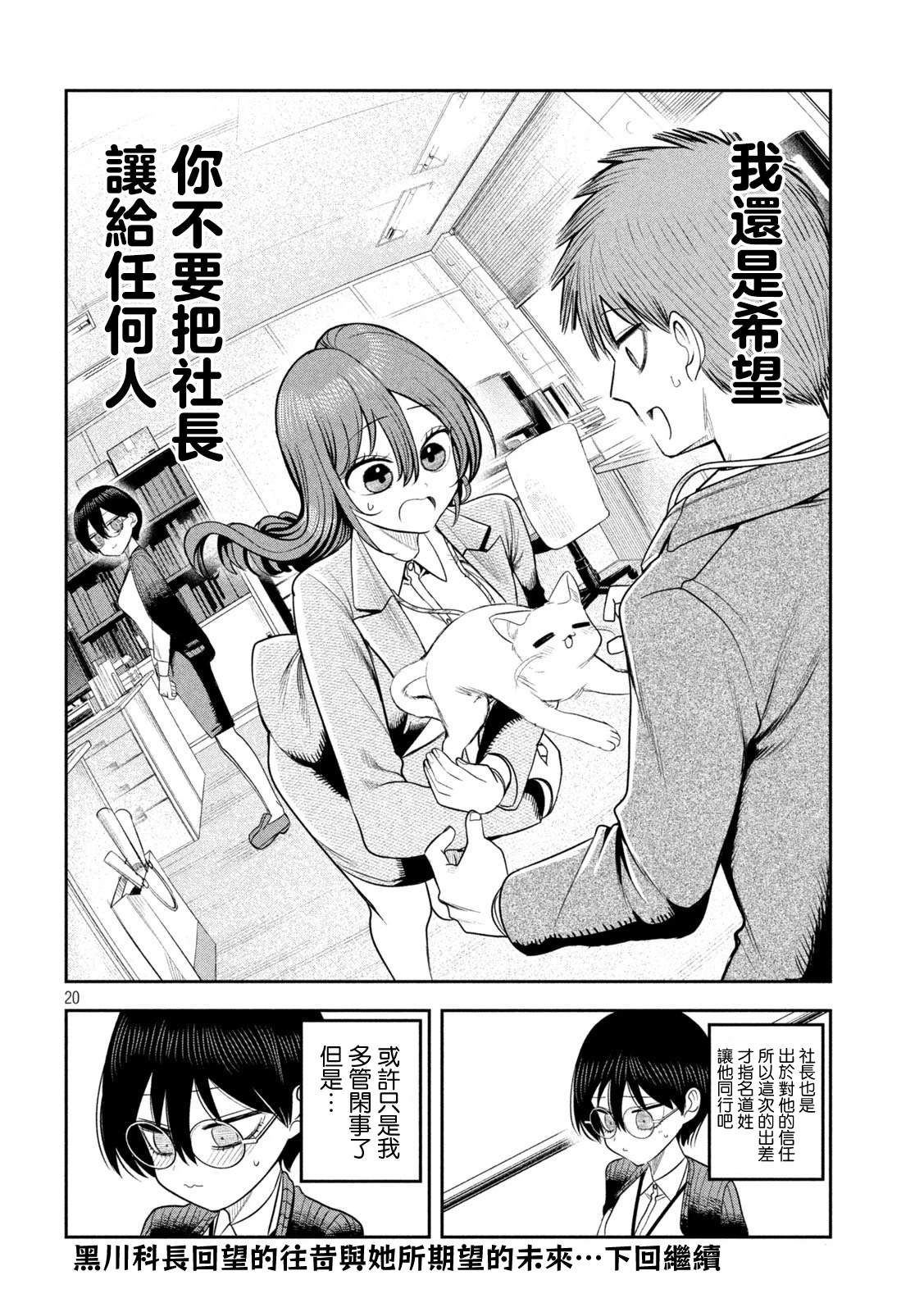 井筒玲奈(24岁)继承了已故父亲的职位,成为印刷公司「井筒印刷」的年轻社长。 然而,身为课长的石墨宪一(37岁)看著她因为过于紧张而对员工变得严厉,心中充满担忧。 某天夜晚,在公园里喝著酒的玲奈吐露心声:「我已经不行了!不想再当社长了」,石墨与她了对话。 而在她醉得不省人事、没察觉他是自己[]己下属的情况下,石墨在星空下悄悄发誓,要默默支撑她……。 是可怕!?还是可爱!!? 一段与女社长之间,秘密又扭曲的办公室恋爱喜剧,正式登场![-折叠]